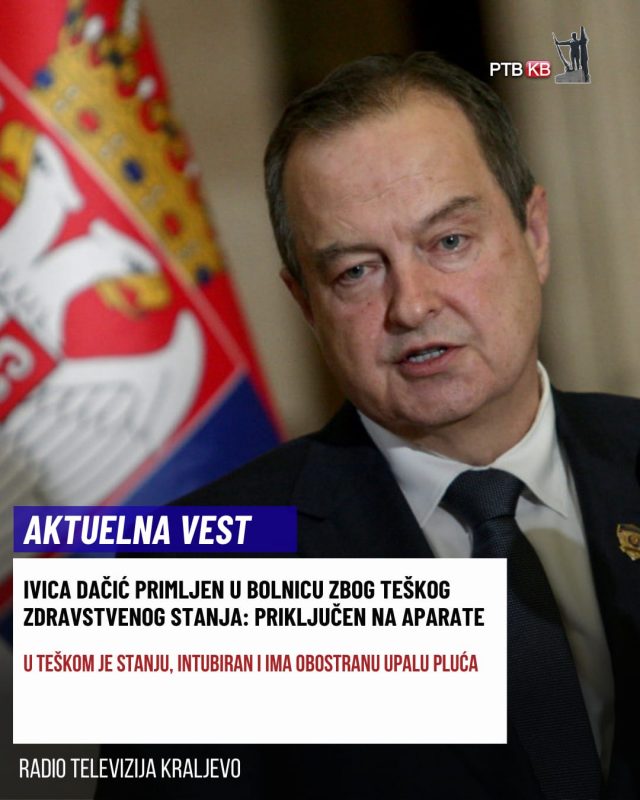 Ministar unutrašnjih poslova Srbije Ivica Dačić hitno je hospitalizovan usled teškog zdravstvenog stanja i priključen je na aparate.